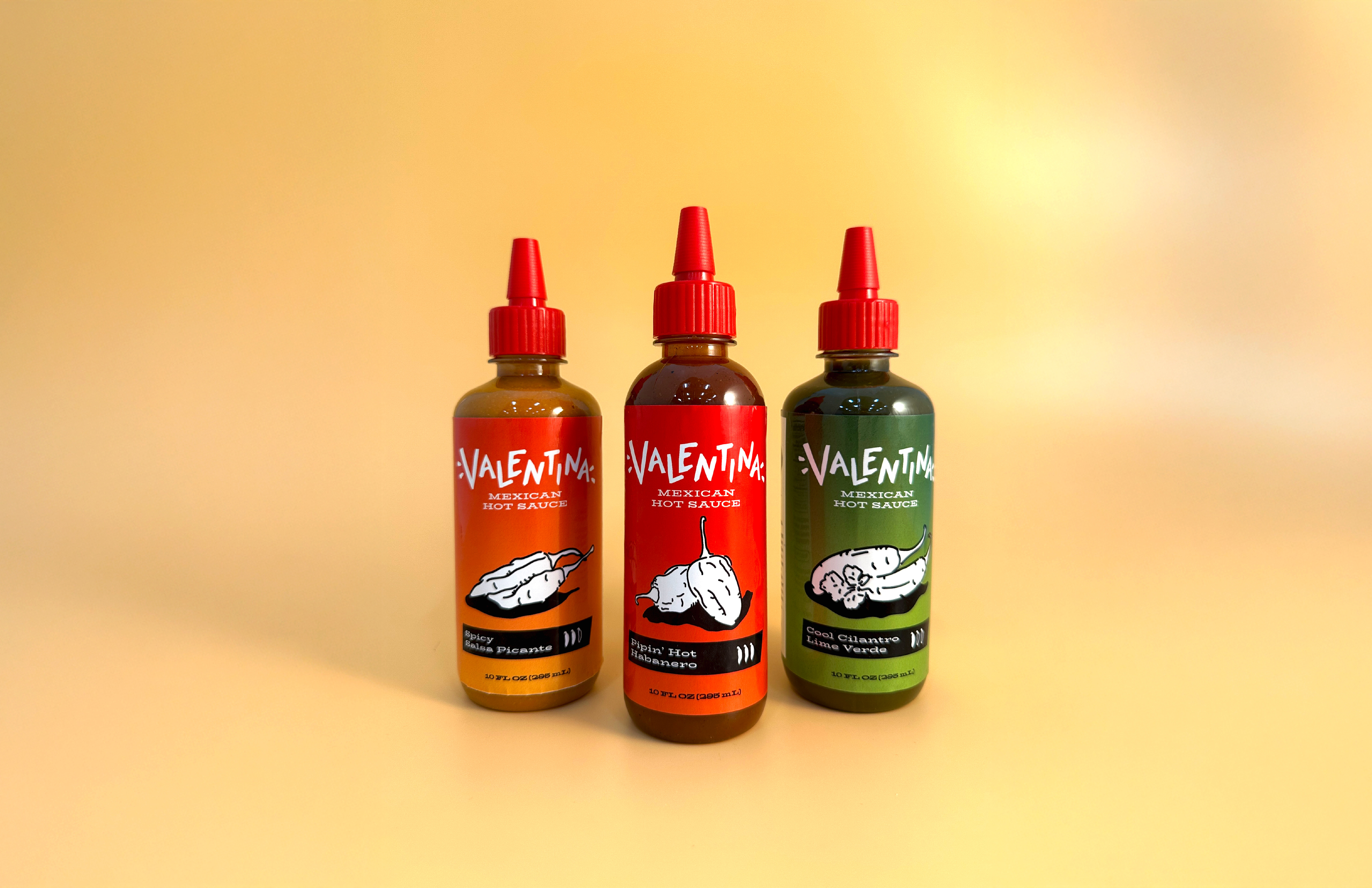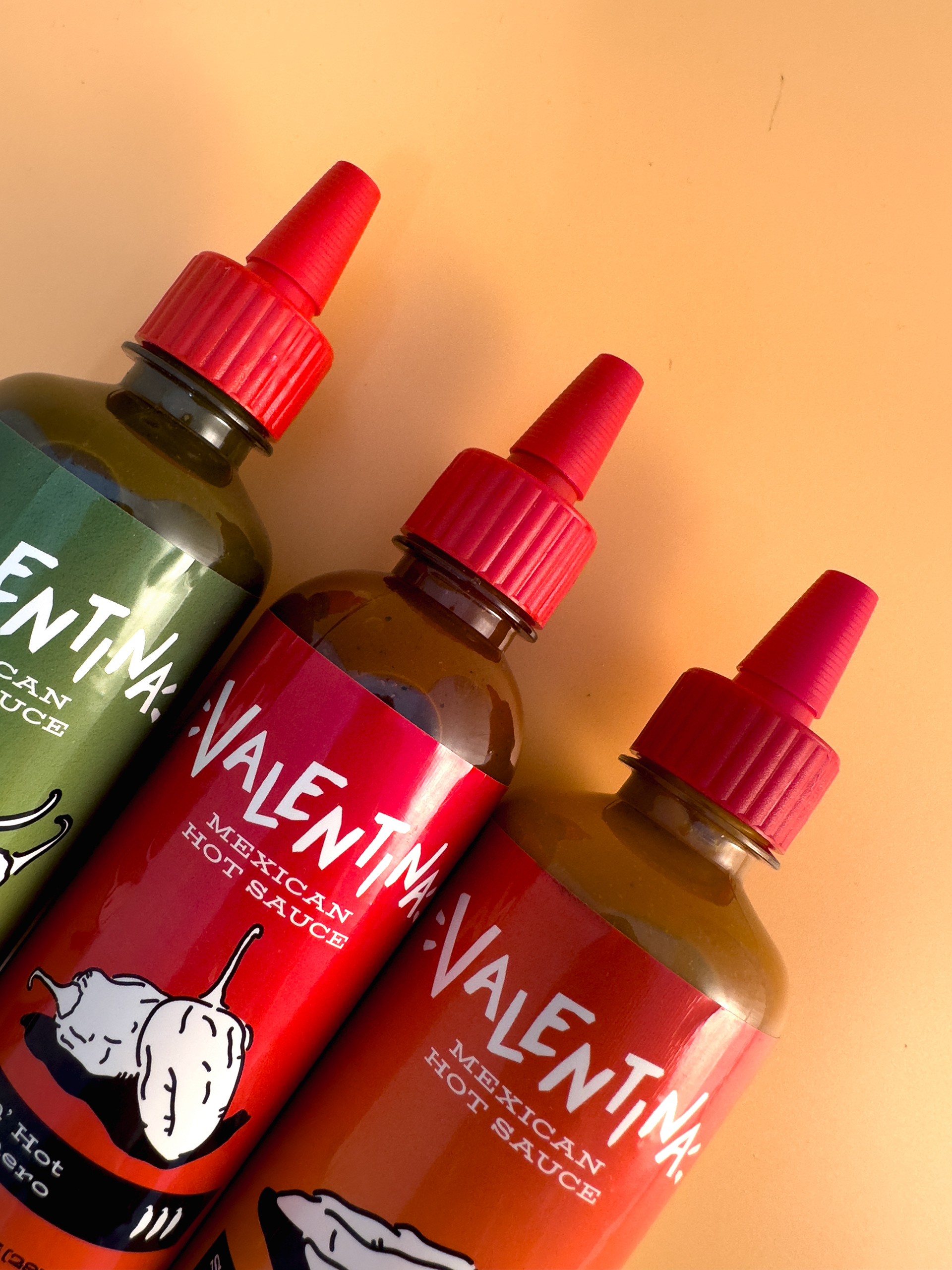 A brand refresh I designed for the hot sauce brand, Valentina. I redesigned their logo and labels for three different flavors. I also printed my labels and adhered them to bottles of hot sauce in order to take product photos.